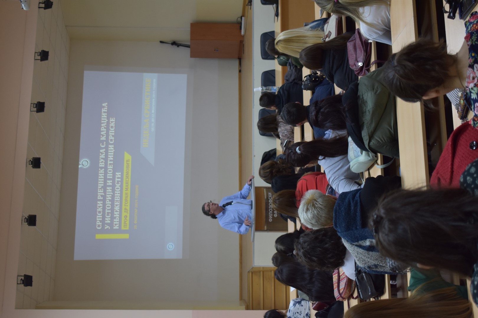 У оквиру трећег дана Недеље Србистике проф. др Горан Максимовић одржао је предавање под називом ,,Српски рјечник Вука Стефановића Караџића у историји и поетици српске књижевностиˮ.