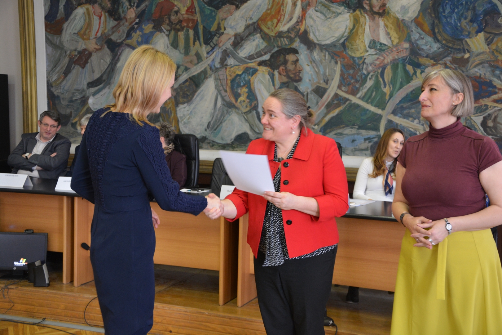 На свечаној додели сертификата присутнима су се обратили: Џин Мекартур, регионална директорка за програме енглеског језика; проф. др Наталија Јовановић, деканица Филозофског факултета у Нишу; г. Зоран Костић, председник Вишег суда у Нишу; и г. Горан Спасић, председник Основног суда у Нишу.