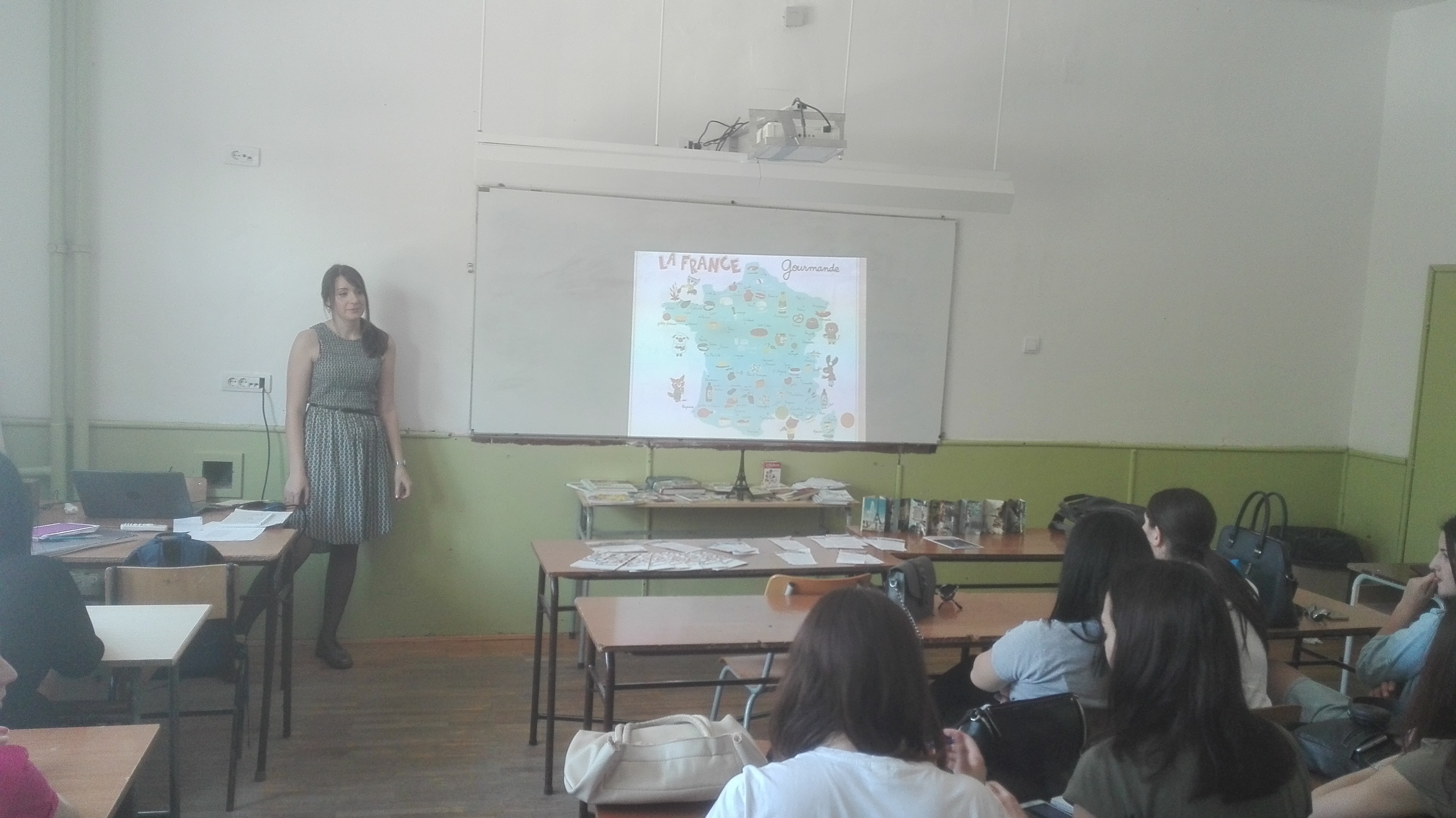 Мср Вања Цветковић, сарадник у настави, и Стефан Здравковић, демонстратор на Департману за француски језик и књижевност Филозофског факултета у Нишу, заинтересованим гимназијалцима су представили француску културу, историју и језик. Промотивни час био је и јединствена прилика да се представе студије француког језика и књижевности будућим бруцошима и све предности овог програма који нуди велики број студијских размена.